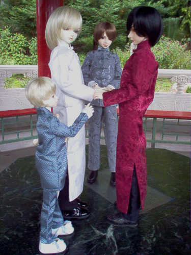 Tsukio: Promise? Mitsu: Promise! Now, come here and let me give you a hug. Tsukio: You smell nice. Mitsu: Thanks. ^_^;; Can I get back to my wedding now? Tsukio: Yeah, I guess so, but I still think he's a gorilla. Mitsu: Oh, you might grow to like him. In the meantime, why don't you and the other Fancy Lads go play in the park? I don't think we need to hear Vanilla for the third time. Tsukio: Okay!